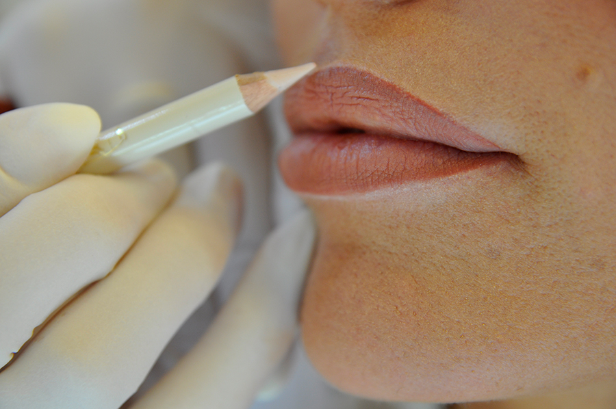 Schwache oder ungünstig verlaufende Konturen und Mundwinkel werden dem natürlichen Idealfall angepasst und in der gewünschten Form und Farbe nachgezeichnet.