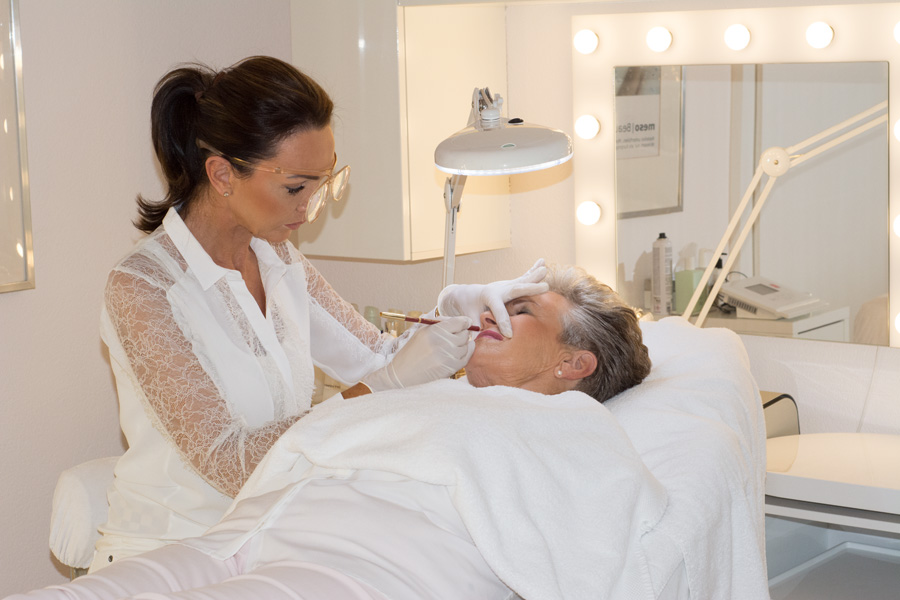 Die Form der Ober- und Unterlippe wird harmonisch aufeinander abgestimmt und das Lippenherz dezent betont. Durch eine spezielle 3D-Schattierungstechnik wird die Lippe ausgefüllt. Sie erhält einen natürlichen Look und holt das Maximum an Volumen heraus.